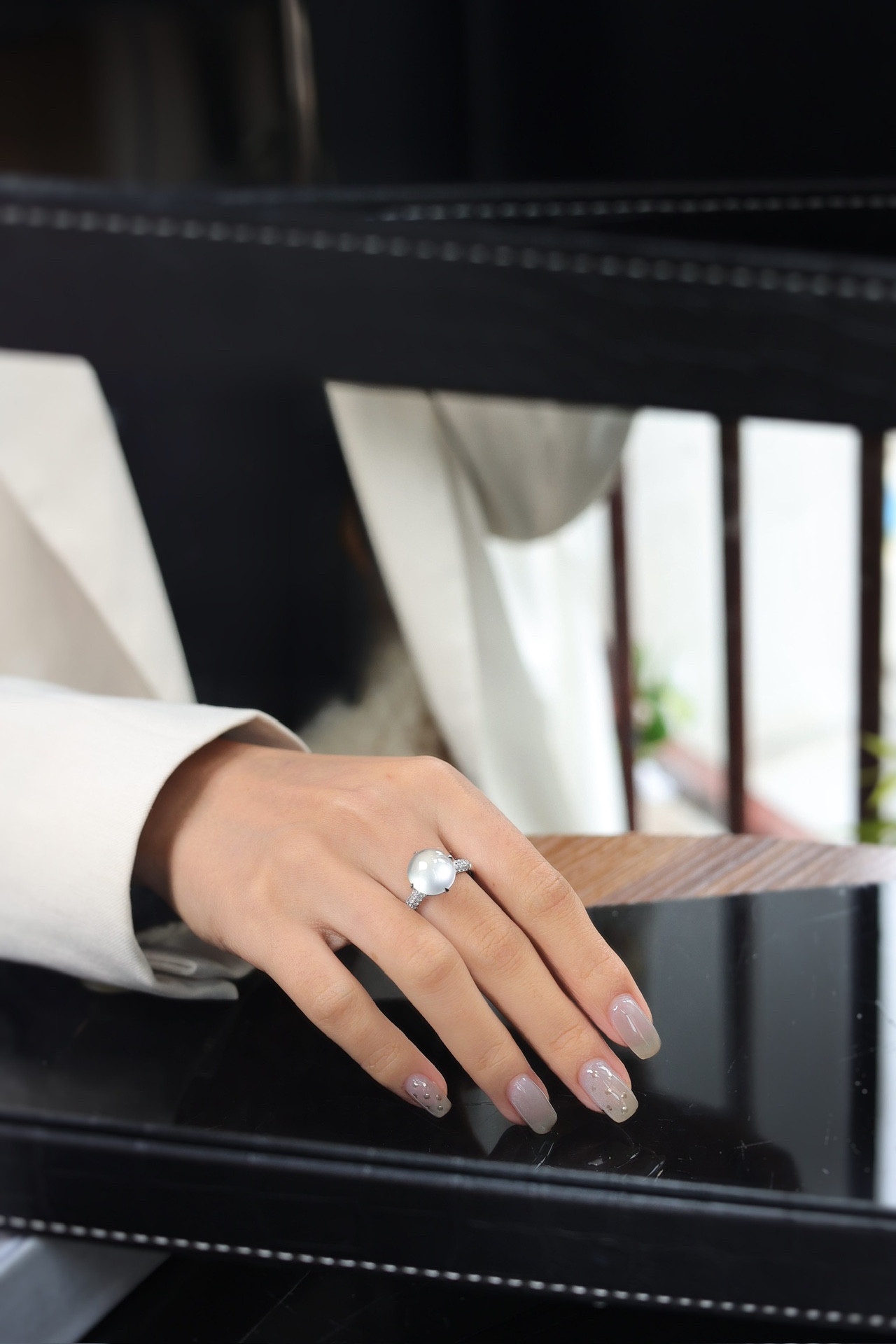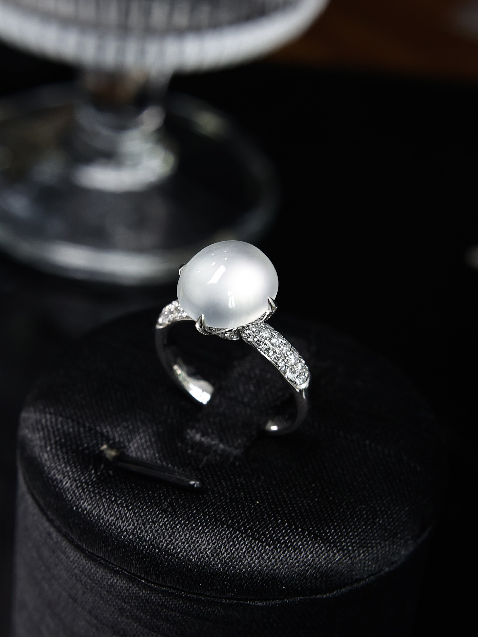 Diamond, yellow diamond oval wide rim ring on the new, dotted hollow ring arm, slightly retro ins style