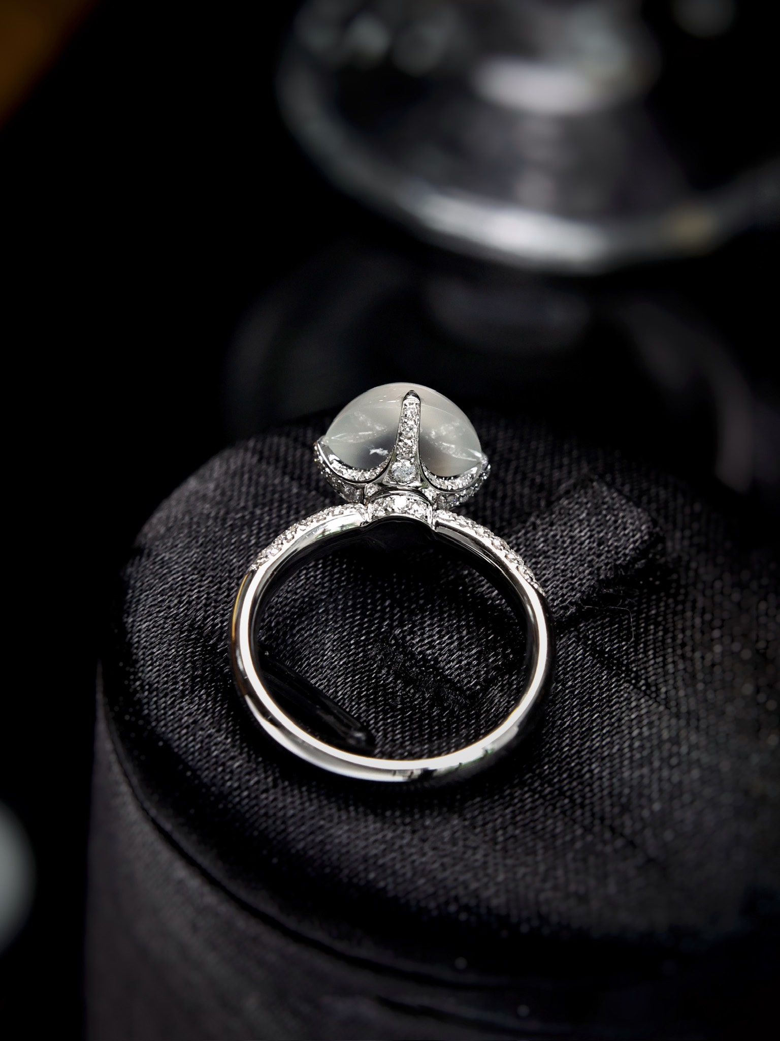 Jade ring, 18k gold inlay gourd ring pendant dual-purpose, overall: 29.5-16.1-13.0, bare stone: 15.3-11.7