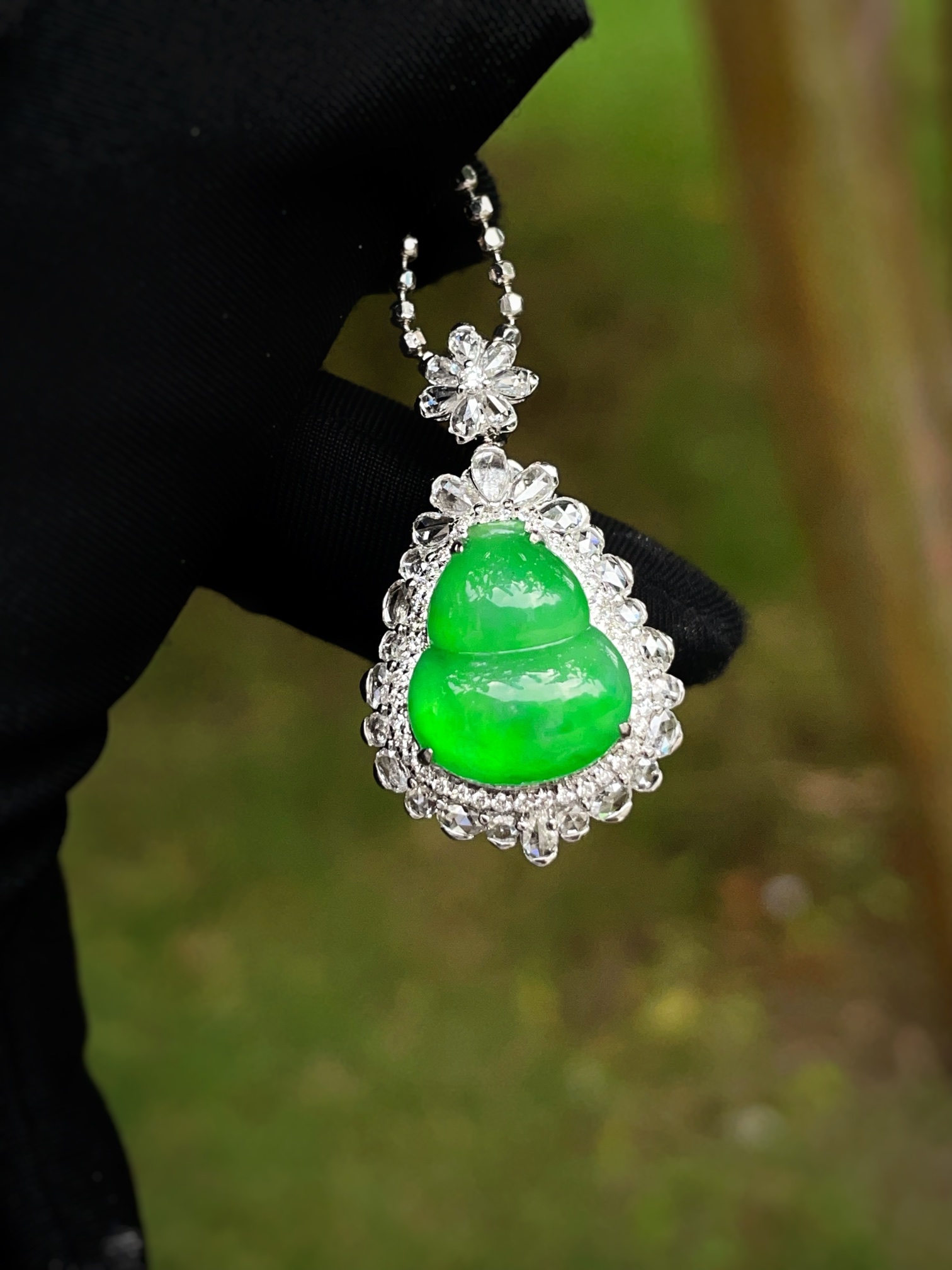 Jade pendant, 18k gold studded with green gourd pendant, overall: 30.2-16.8-10.4, bare stone: 16.0-12.2